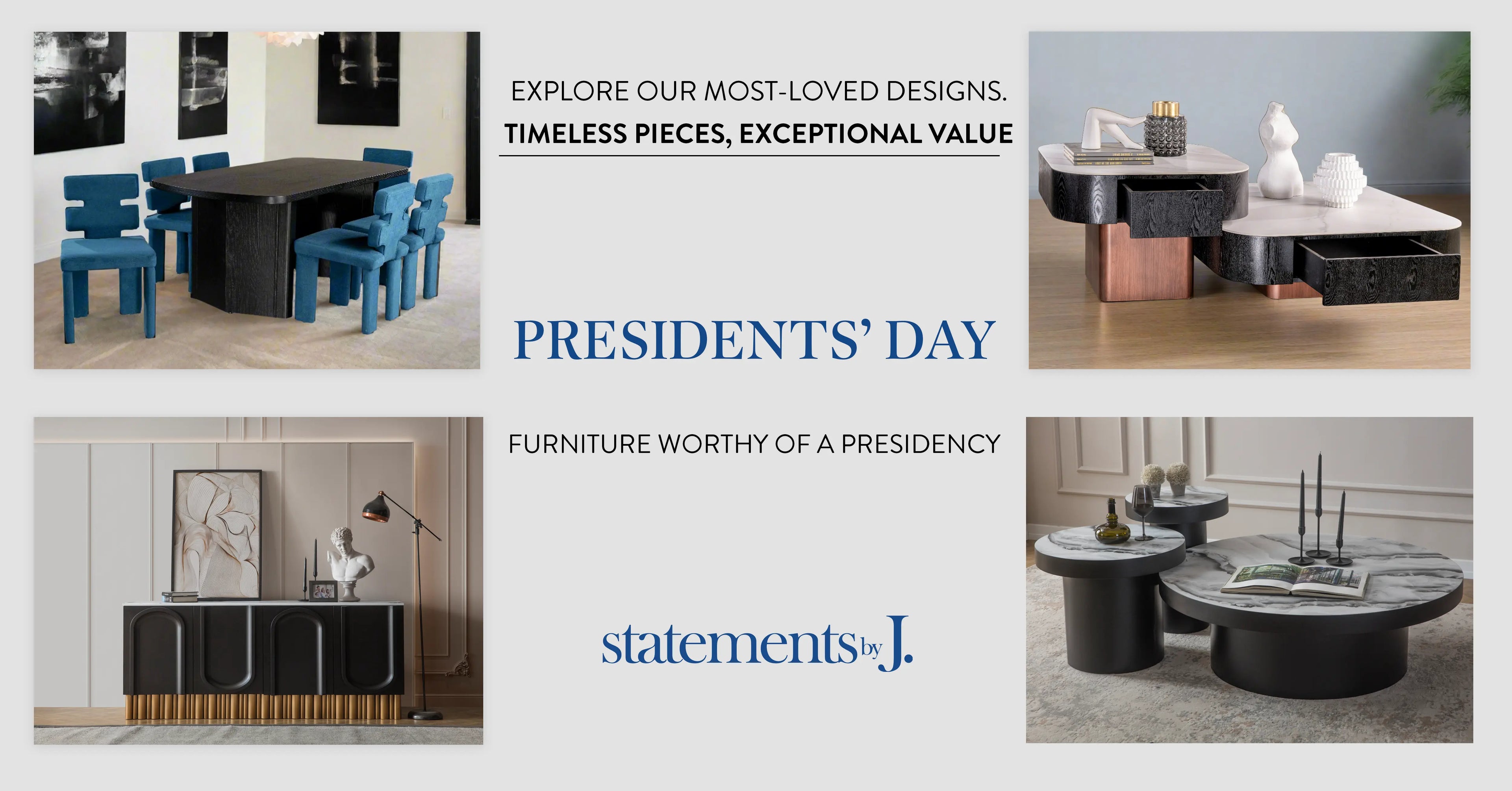 You're at the best place to buy modern furniture online. At Statements by J, we specialize in affordable luxury furniture designed for style-conscious homeowners and interior designers. Are you ready to make a statement?