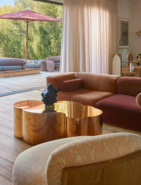 How House of Honey Reinvented Feminine Glamor in Los Angeles featuring our Luca Coffee Table in Rose Gold (now comes in 2 pieces)