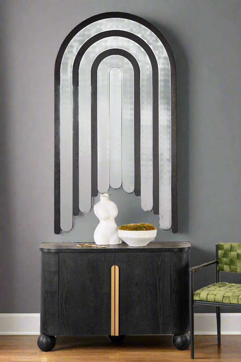 Unleash your bold sense of style with the Arc 72 inch Full Length Black Mirror. This modern, tall mirror is more than just a reflective piece of decor - it's a daring statement that adds depth and dimension to any room. Elevate your space with this mirrored wall art and embrace the thrill of being bold.
