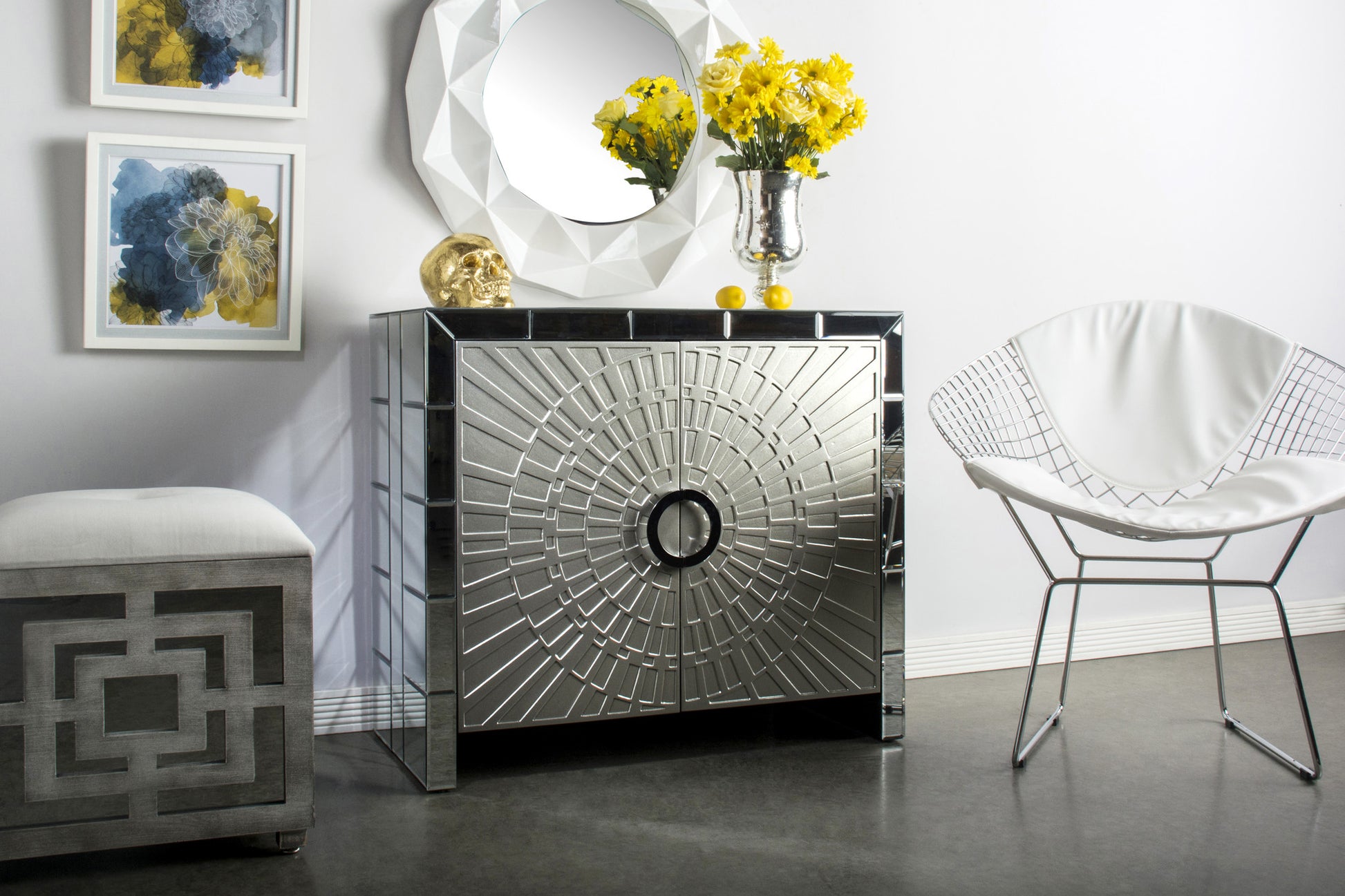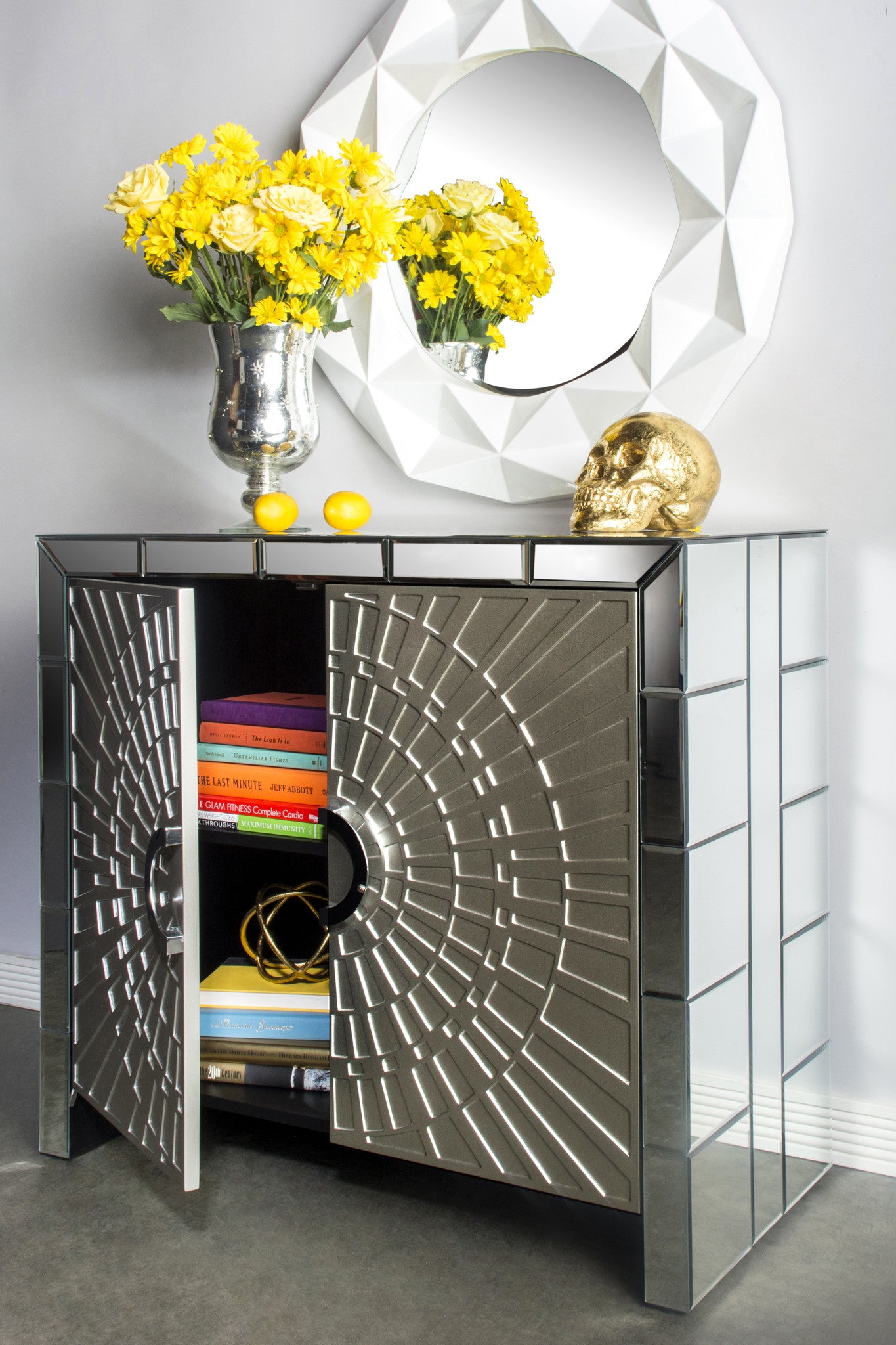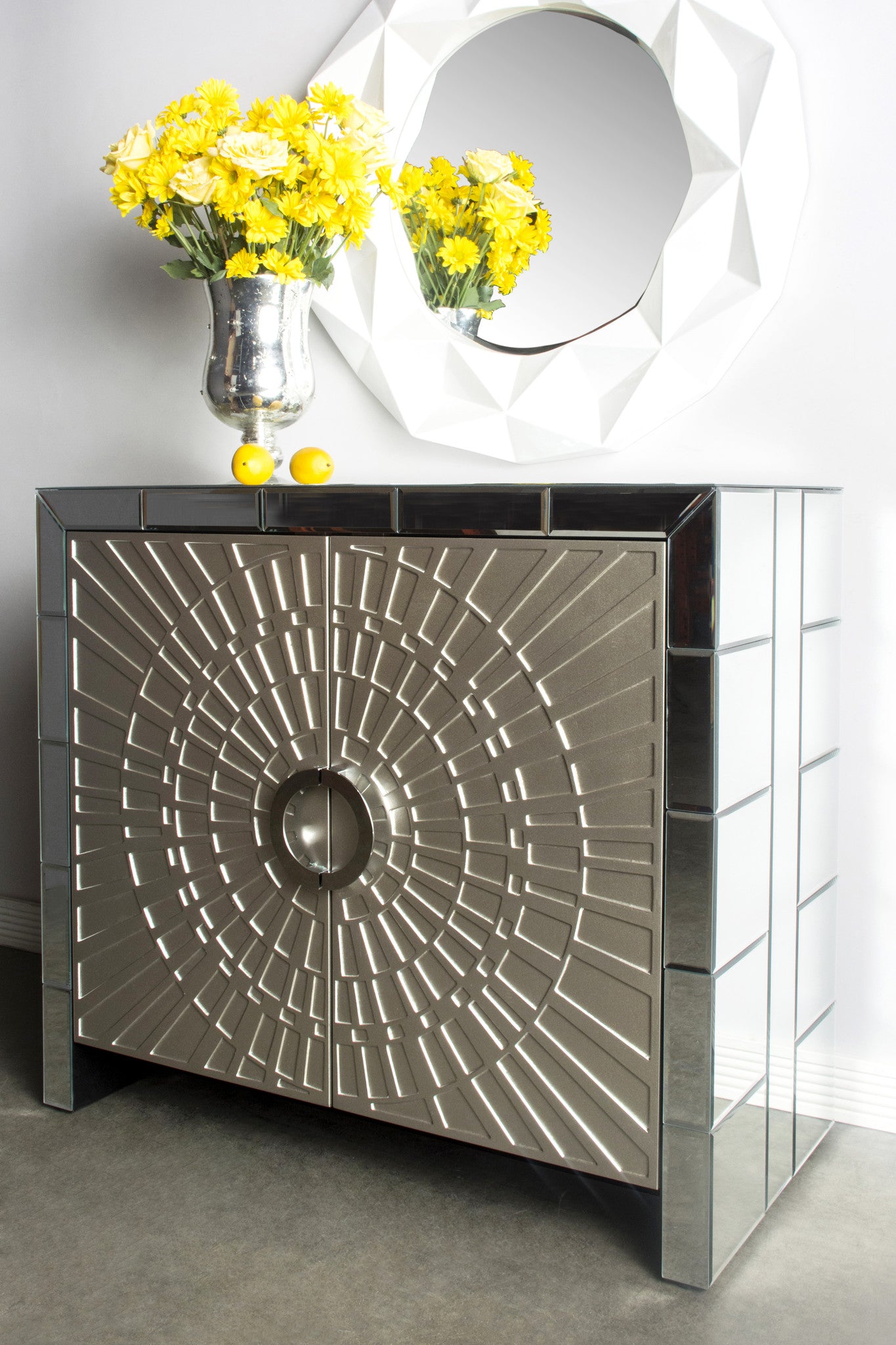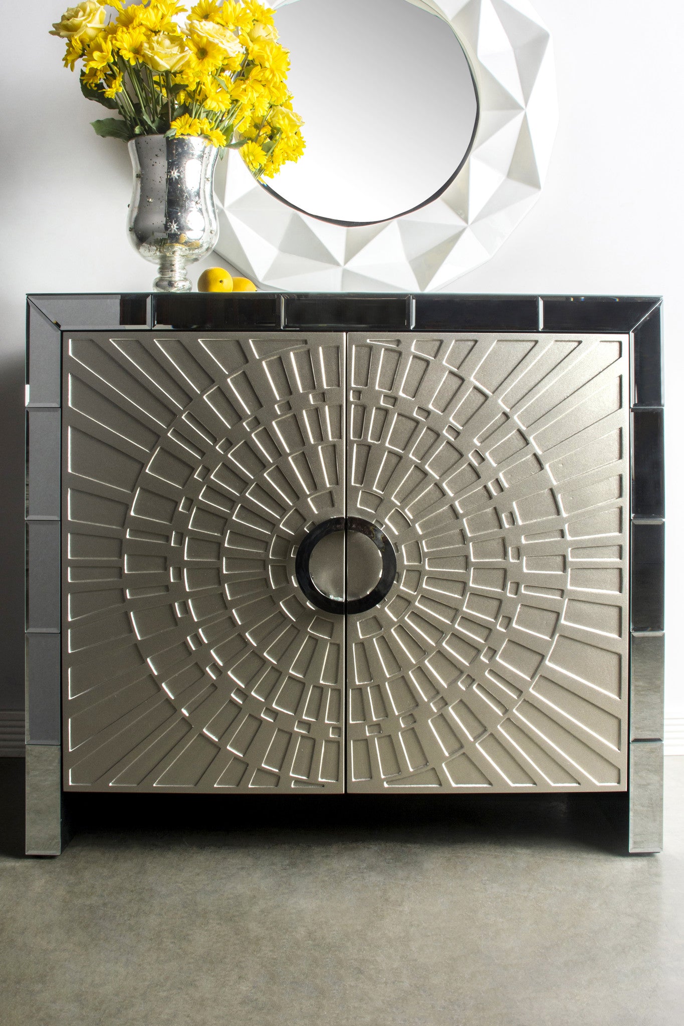 La Croissette Mirrored Accent Cabinet is the perfect blend of style and functionality. This art deco cabinet adds a touch of elegance to any room and offers ample storage space. Get ready to make a statement with this impressive piece!