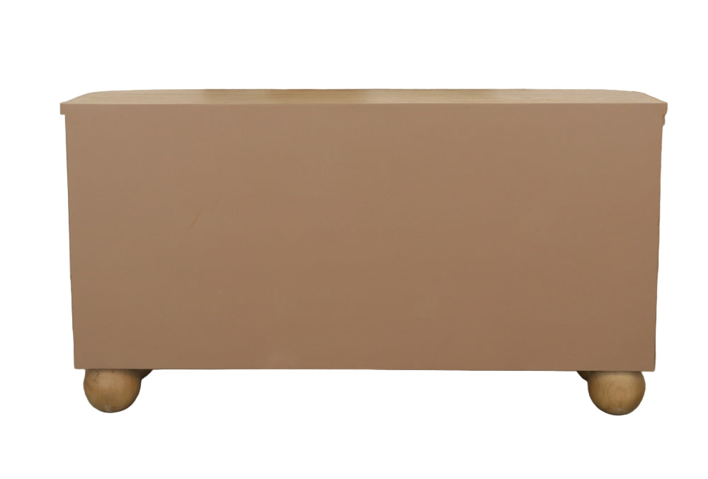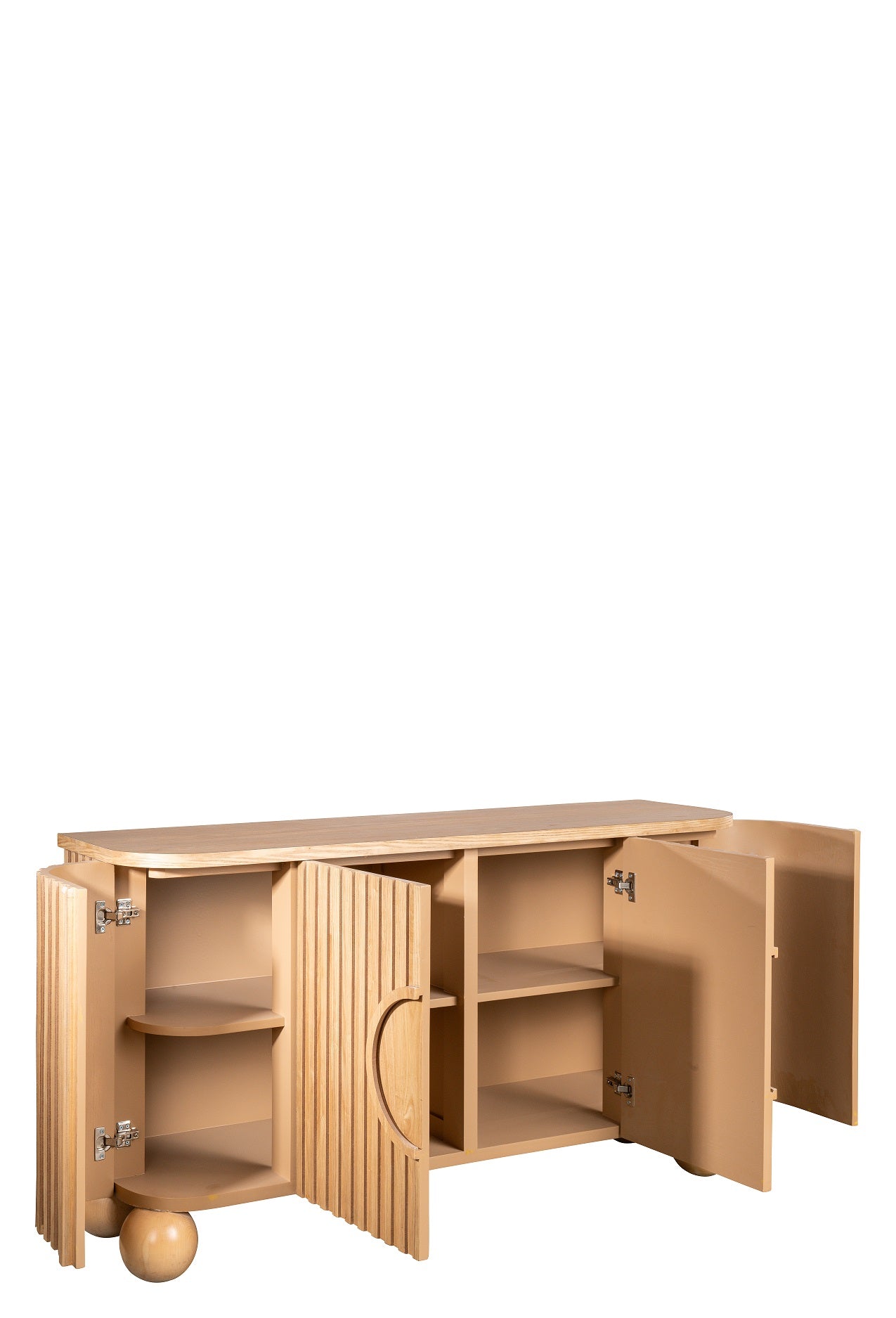 Elevate your space with the sculptural elegance of the Lucca 59.5'' Sideboard. Designed with eye-catching fluted door fronts and distinctive ball feet, this cabinet delivers timeless style with a modern twist. Behind the four doors, you’ll find three spacious cabinet compartments—each with a fixed interior shelf—perfect for storing dinnerware, linens, electronics, or everyday essentials. Perfect for entry way, dining room or living room decor as a TV unit.