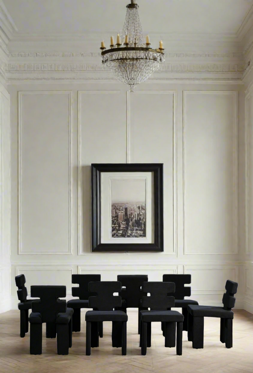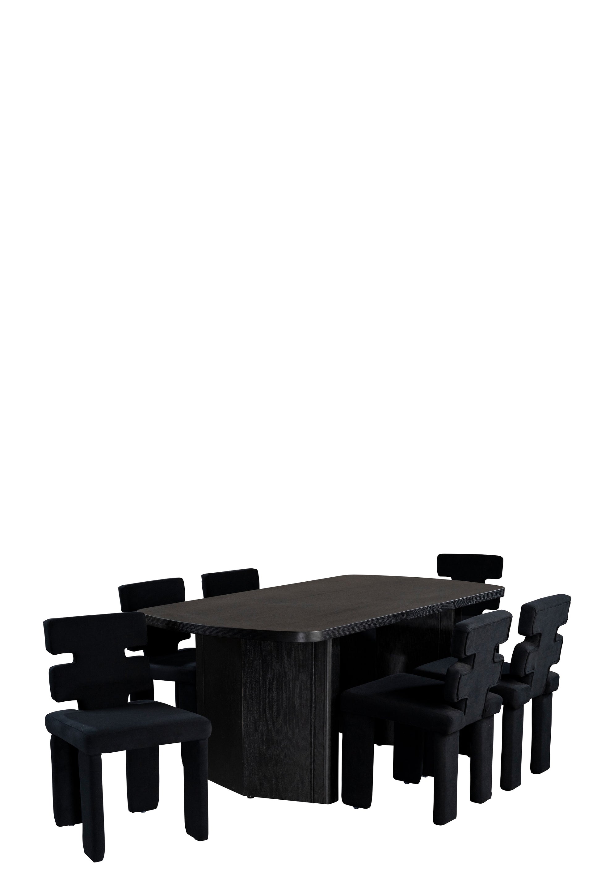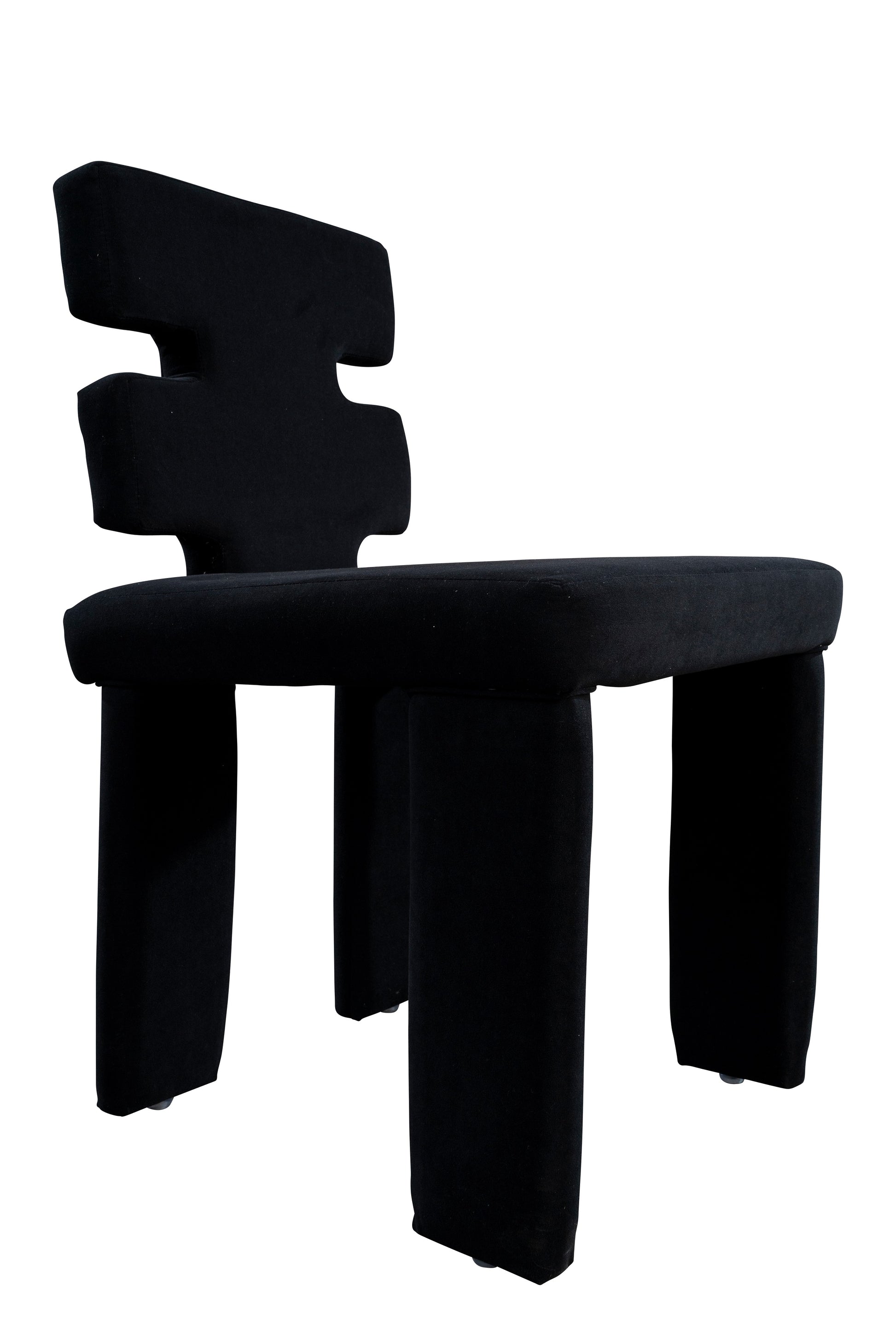 The Mya Dining Chair in black is the perfect addition to elevate your dining experience. Crafted with luxurious velvet fabric and a unique design, this fully upholstered chair is perfect as a side chair or dining chair. Impress your guests and add a touch of sophistication to your dining room. Now that's a statement piece.